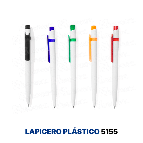 - Lapicero plástico retráctil, con clip de color traslúcido. Color de tinta azul.