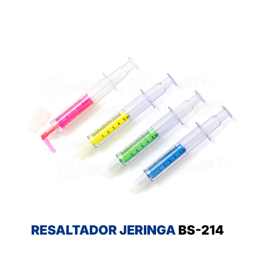 - Resaltador en forma de Jeringa, Material: Plástico.